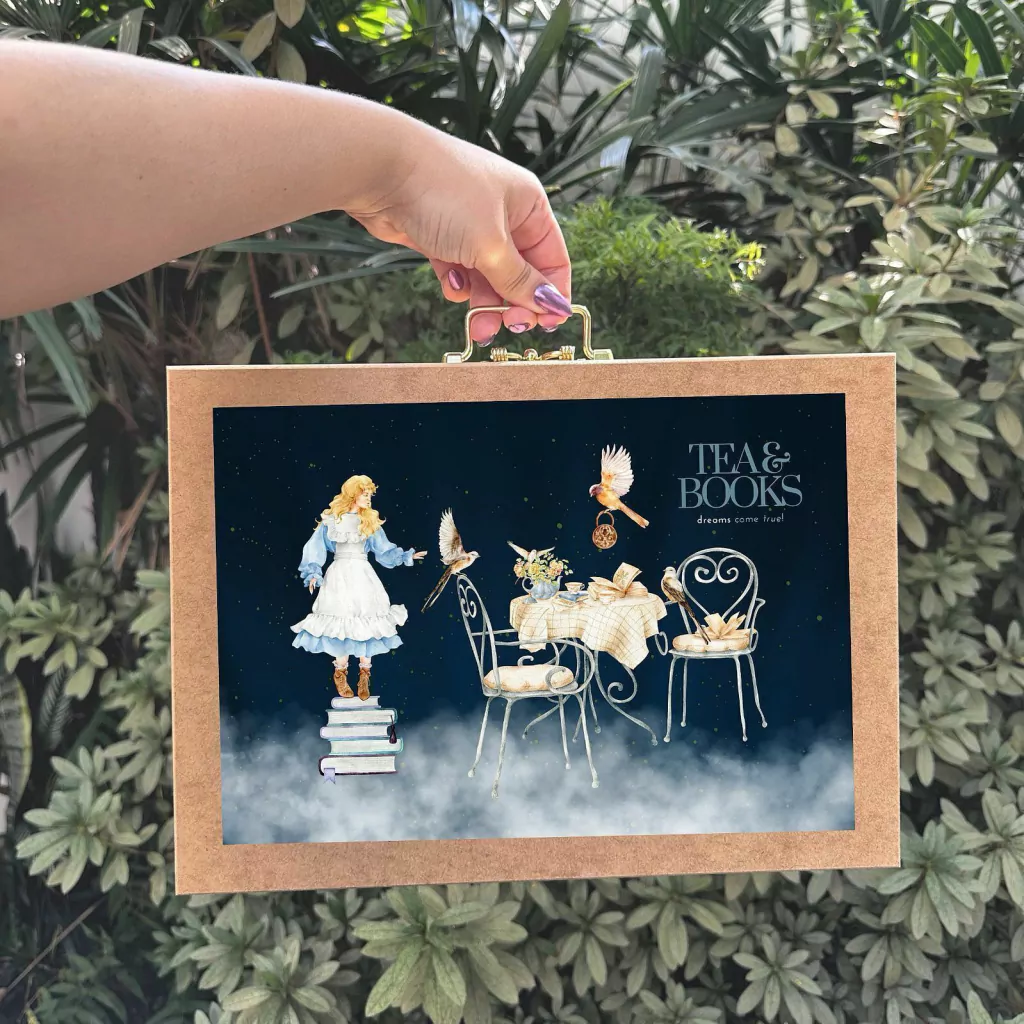 Dentro, você encontrará tudo o que um verdadeiro amante de chás e livros deseja: itens de papelaria encantadores, uma seleção de chás deliciosos para acompanhar sua leitura, e claro, um livro cuidadosamente escolhido para mergulhar em novas histórias e aventuras.